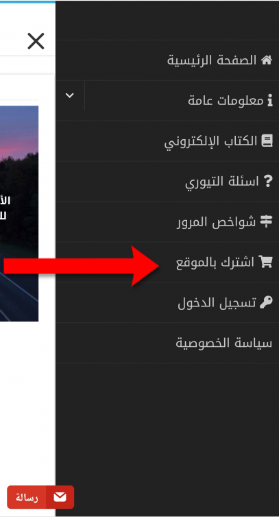 اولاً من القائمة العليا اختار اشترك بالموقع