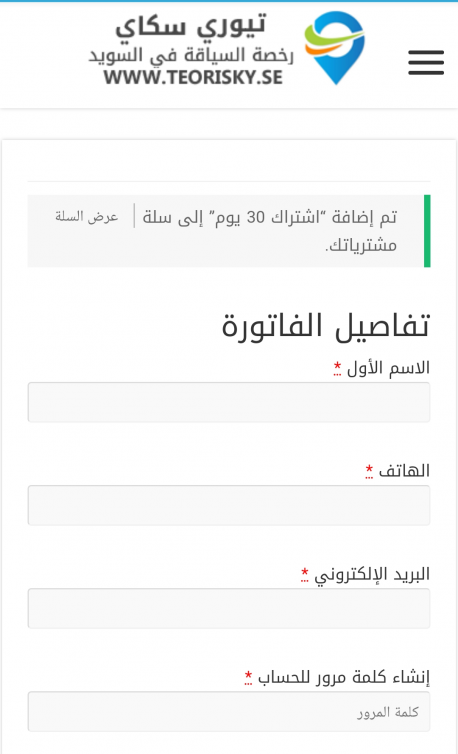 تسجيل الدخول الى تيوري سكاي من صفحة طلب الاشتراك
