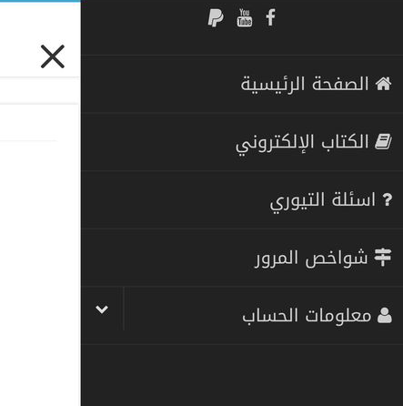 من القائمة العليا للموقع تجد كل ما تريد دراسته سواءً الكتاب الالكتروني او شواخص المرور او اسئلة التيوري.